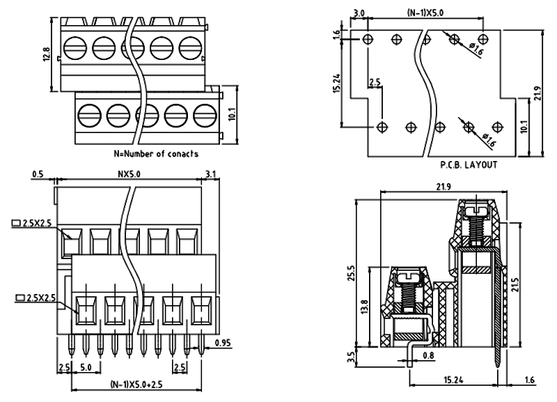 PCB接線端子彈片式