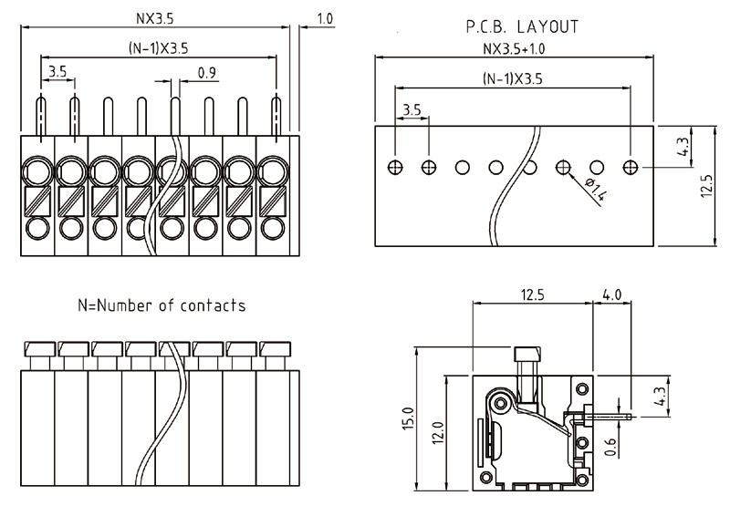 PCB接線端子彈片式