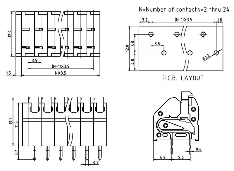 PCB接線端子彈片式