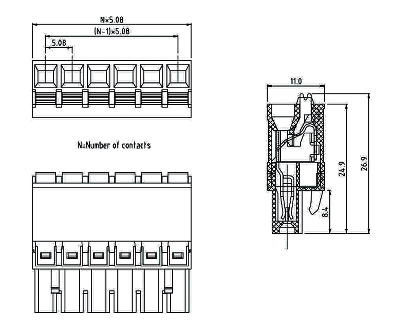 F85-P-5.08開口式90度