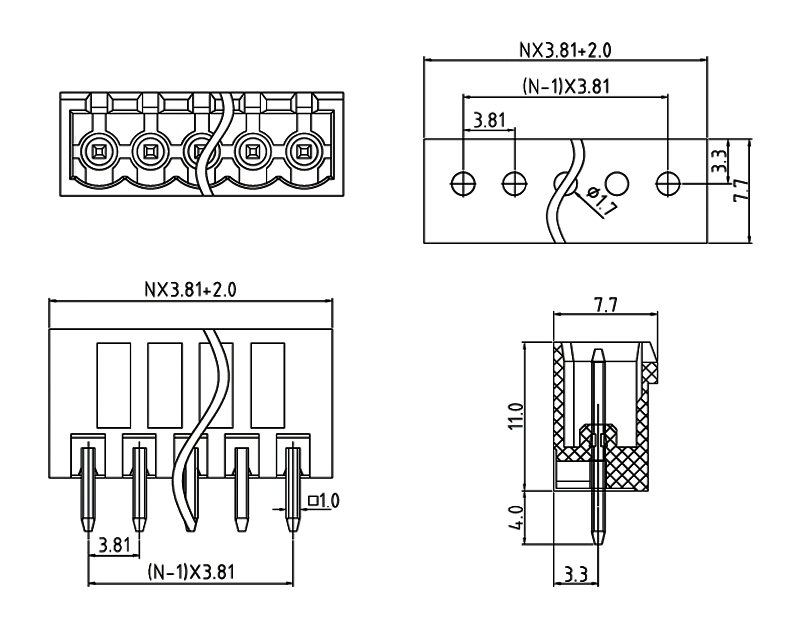 F83-9-3.81 180度閉口式