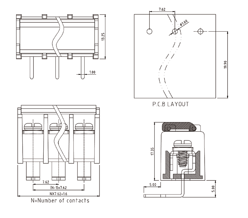 PCB接線端子彈片式